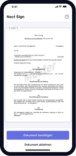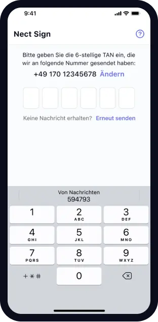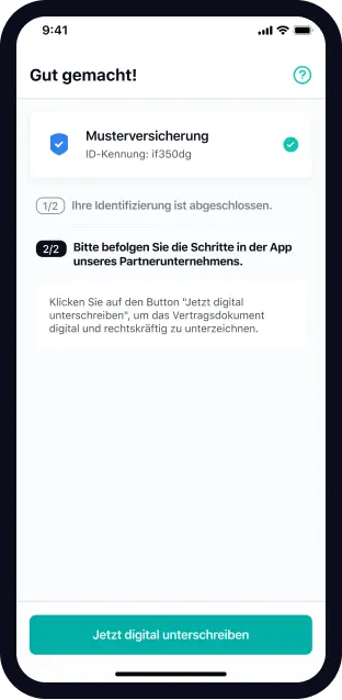 Eine QES bedarf einer Identifizierung vor der Unterzeichnung. Dies erfüllen wir mit der Einbindung unseres Ident-Verfahrens sowie Sicherheitsfragen in den Prozess.