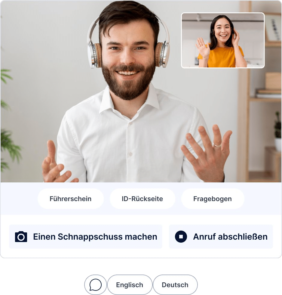Holen Sie sich eine All-in-One-Video-KYC-Plattform mit dynamischer Benutzerwarteschlange und Kompatibilität mit jedem Gerät. Darüber hinaus können unsere internen Mitarbeiter bei Bedarf den gesamten Prozess übernehmen.